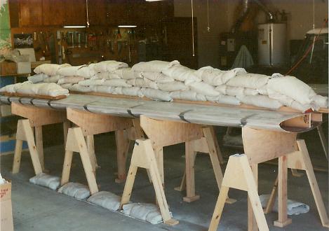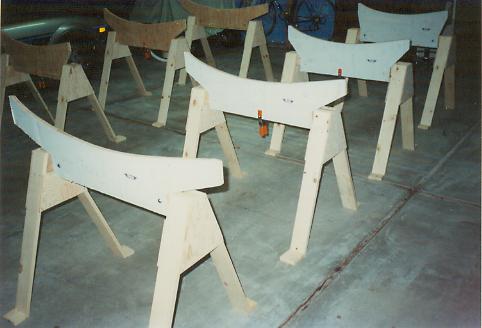 representing the wing spar centerline. The saw horses are aligned