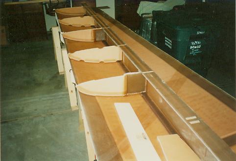 constructed for each wing. A template is attached to plywood, cut